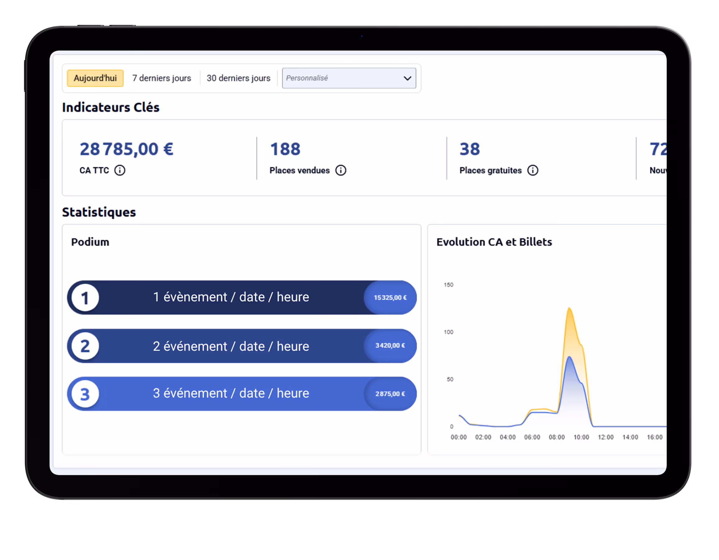 Un back-office SaaS puissant et intuitif pour gérer toute votre billetterie.
